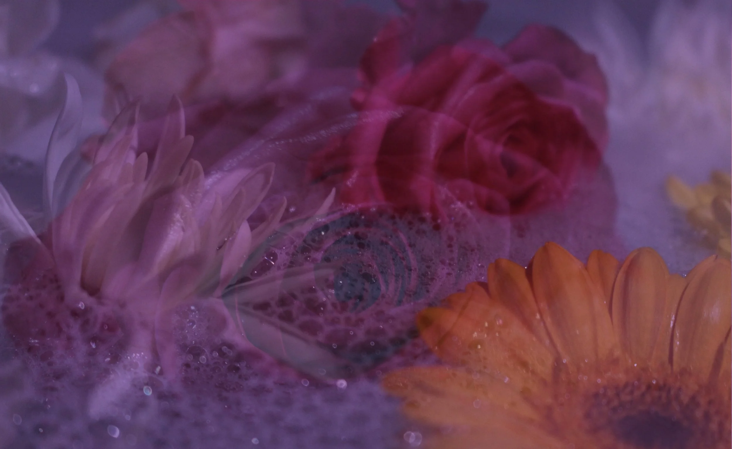 By overlaying forms the petals dissolve into one another, the colours bleed, and the focus shifts. The result feels immersive, as though the image is suspended somewhere between blooming and decay. The dainty becomes unstable. What appears gentle at first glance begins to feel submerged, overwhelmed, or multiplied beyond control.
